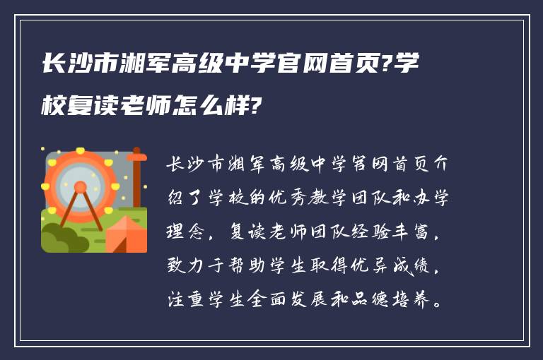 长沙市湘军高级中学官网首页?学校复读老师怎么样?