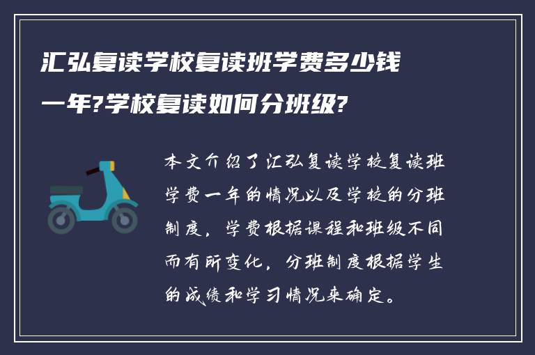 想要知道汇弘复读学校复读班学费一年需要多少钱吗?想了解学校是如何分班级的吗?在这里,我们将为您一一解答。
