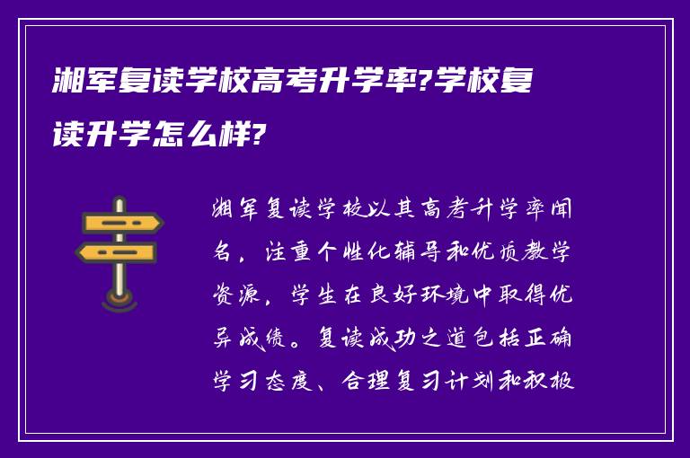 湘军复读学校一直以来以其高考升学率闻名,那么这究竟是如何实现的呢?