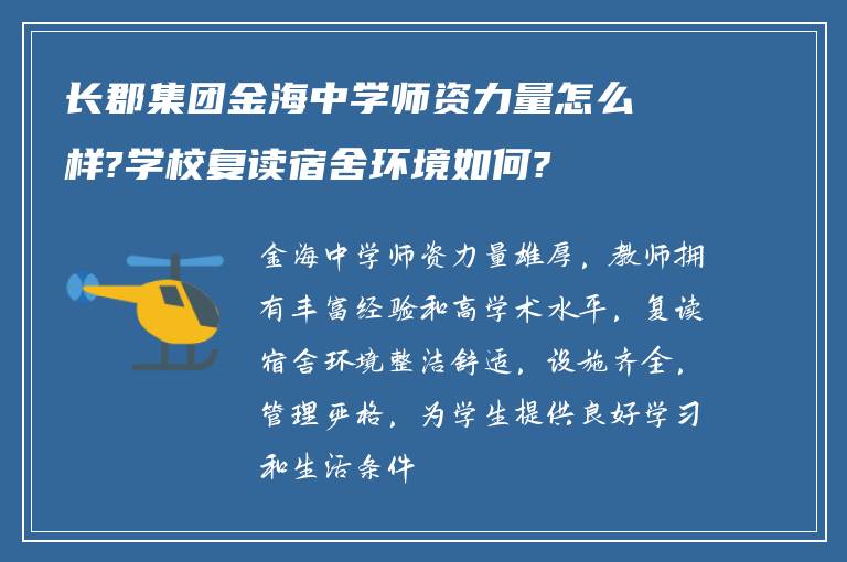 长郡集团金海中学师资力量怎么样?学校复读宿舍环境如何?