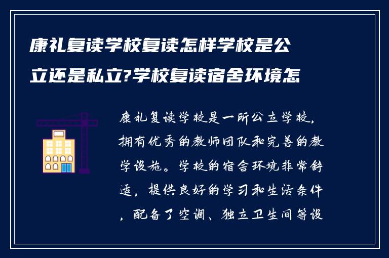 康礼复读学校是一所备受学生和家长关注的复读学校,那么这所学校到底是公立还是私立呢?学校的宿舍环境又如何呢?下面我们来一探究竟。