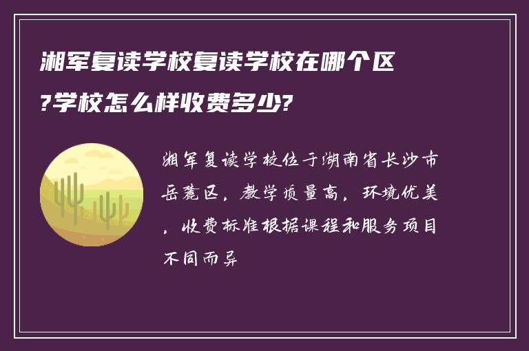 想要了解湘军复读学校在哪个区以及学校的收费情况吗?下面为您详细介绍。