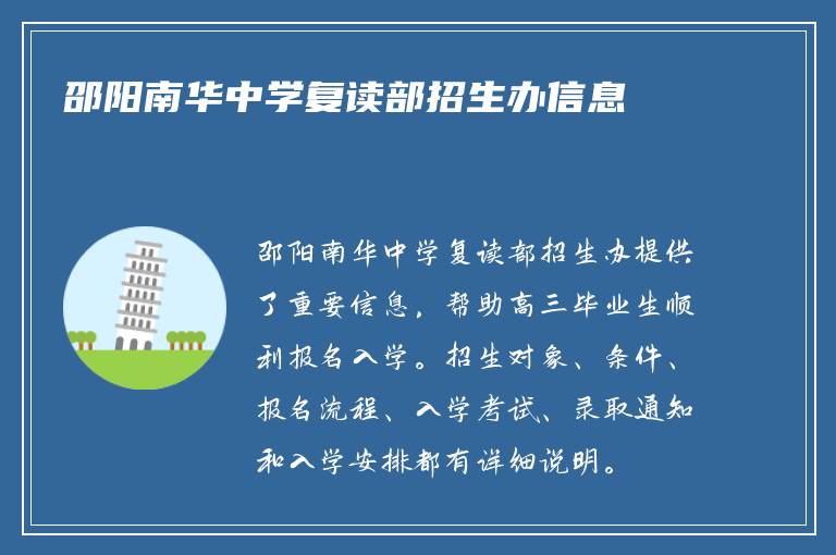 希望以上信息能够帮助到即将报考邵阳南华中学复读部的同学们,祝大家顺利入学!