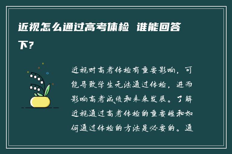 近视怎么通过高考体检 谁能回答下?
