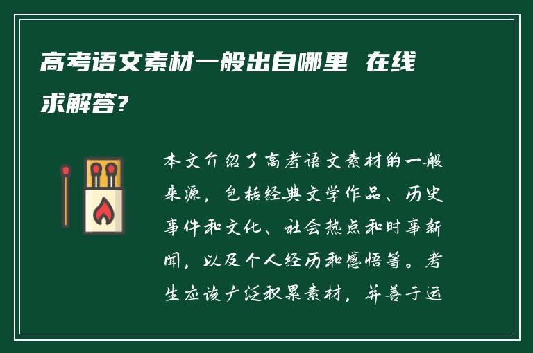 高考语文是每位考生必须面对的一门重要科目,而语文素材的来源对于备考至关重要。那么,高考语文素材一般出自哪里呢?