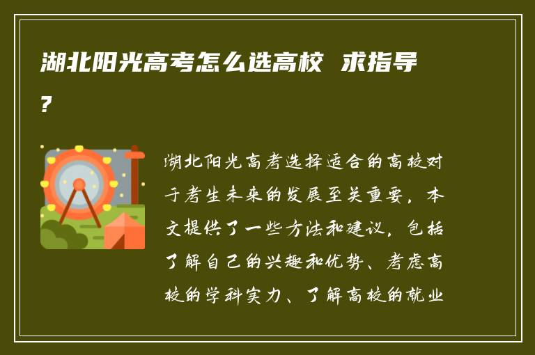 以上是关于湖北阳光高考如何选择适合的高校的一些建议和方法。希望这些信息能够帮助你在湖北阳光高考中做出明智的决策,选择一个适合自己的高校,为未来的发展打下坚实的基础。